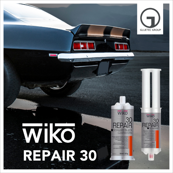 Klej WIKO REPAIR 30 to dwuskładnikowy klej na bazie poliuretanu, który nadaje się w szczególności do wykonywania strukturalnych i kosmetycznych napraw elementów z różnych tworzyw sztucznych oraz z metalu, drewna, kamienia, betonu lub szkła. Klej ten jest bardzo odporny na działanie wody, wielu kwasów i ługów, oleju, paliwa i rozpuszczalników. Klejone połączenia są poza tym odporne na uderzenia, działanie czynników klimatycznych oraz starzenie się. Czas obróbki kleju wynosi tylko ok. 30 sekund, a klejone połączenia można szlifować już po upływie 2-5 minut.