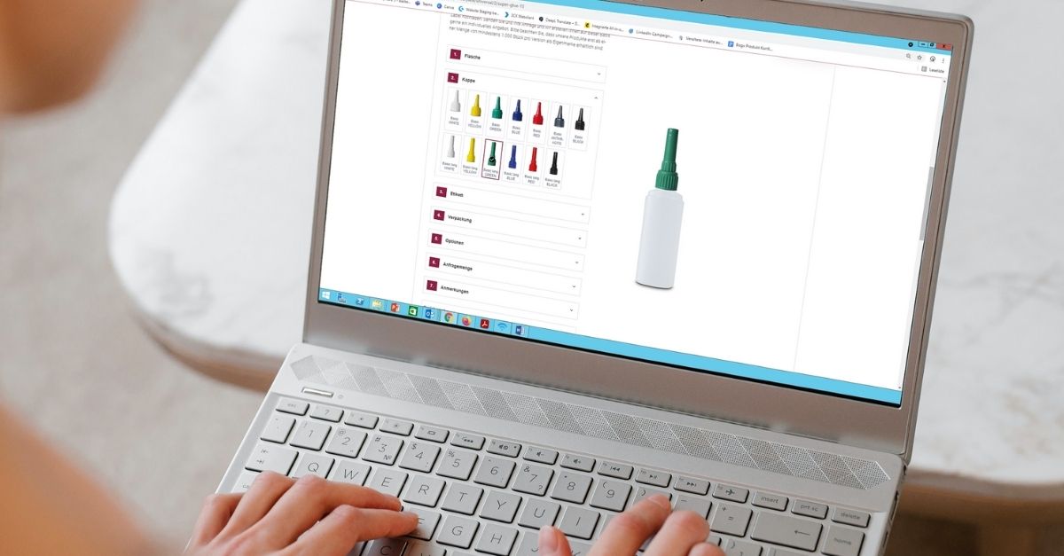 Nasz nowy konfigurator produktów jest już gotowy do użycia. Dzięki niemu nasi klienci, którzy sygnują nasze produkty swoją prywatną etykietą, mogą skonfigurować kleje CA dokładnie według swoich wymagań. Oprócz butelek i nakrętek można wybrać różne rodzaje etykiet wraz z dodatkowymi opcjami. W ten sposób zindywidualizowane zapytanie zostaje do nas przesłane za pomocą kilku kliknięć.
