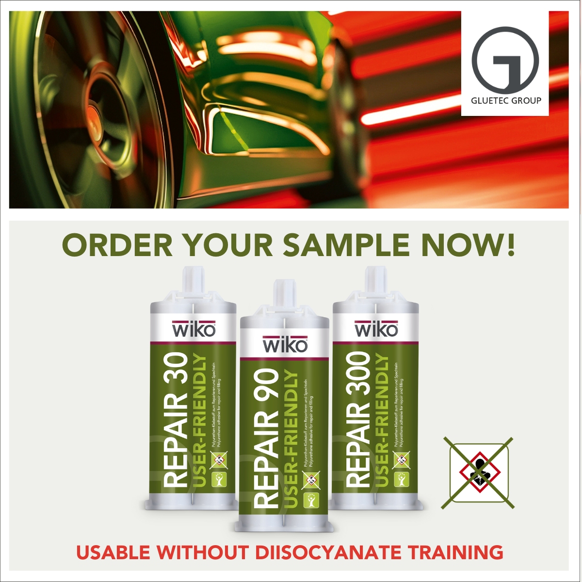 Kleje naprawcze WIKO® REPAIR USER FRIENDLY są dostępne z czasami obróbki 30, 90 i 300 sekund i są specjalnie dostosowane do szerokiego zakresu zastosowań w budowie pojazdów i naprawach części karoserii. Testy laboratoryjne potwierdziły wysoką wytrzymałość klejenia elementów z PVC poprzez zerwanie podłoża, a nie klejonych elementów. Żaden inny porównywalny klej nie był w stanie osiągnąć takiego samego wyniku w tym ekstremalnym teście GLUETEC! To sprawia, że WIKO® REPAIR UF jest ultrawytrzymałym rozwiązaniem do precyzyjnego klejenia szerokiej gamy tworzyw sztucznych i metali.